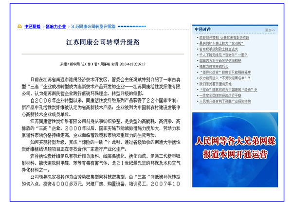 中經(jīng)聯(lián)播、新華網(wǎng)——江蘇同康公司轉(zhuǎn)型升級路