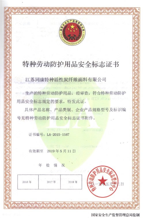我公司生產(chǎn)的KN95口罩通過(guò)了特種勞動(dòng)防護(hù)用品安全管理中心的嚴(yán)格審核,并獲得特種勞動(dòng)防護(hù)用品安全標(biāo)志證書。