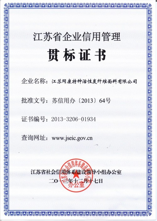 在此次信用管理的評定過程中,同康公司一直堅持推進信用管理建設,貫徹打造信用企業品牌助推誠信江蘇建設的要求,在參加企業信用管理示范創建工作以來,嚴格對照江蘇省實施萬企貫標、百企示范工程具體要求,經申請、實施、驗收三個階段,并經實地檢驗和評估最終榮獲江蘇省信用管理貫標企業殊榮。